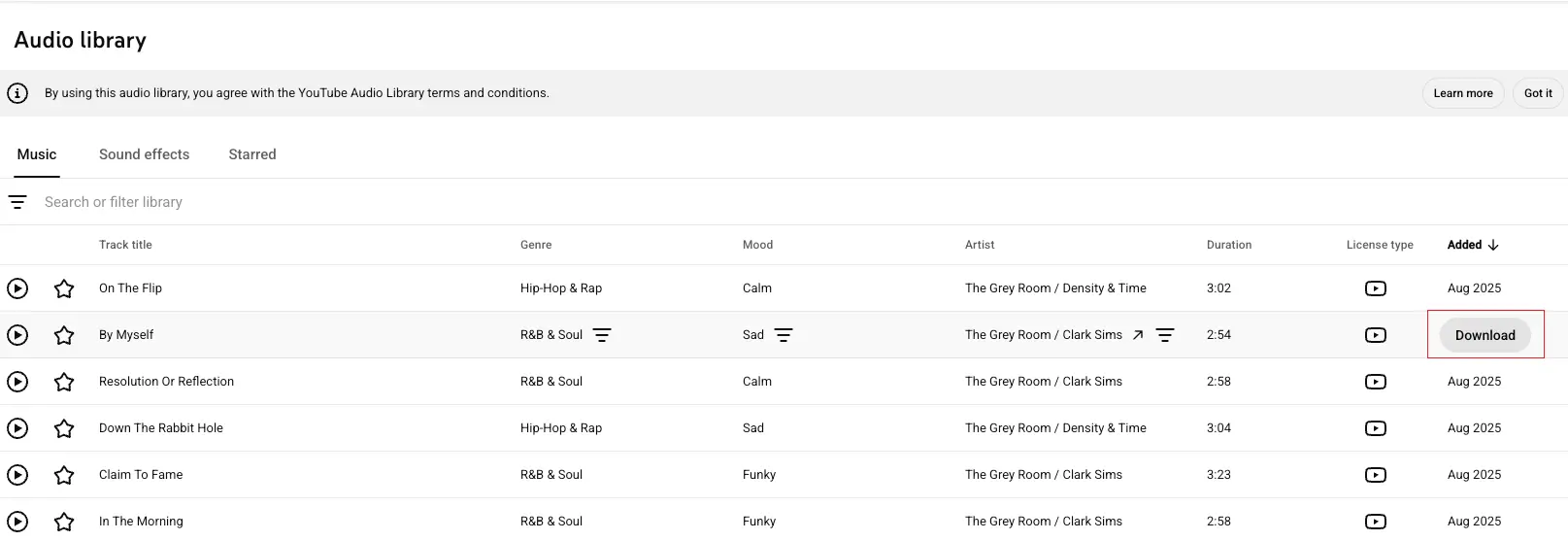 Step 4: Hover over the date listed on the far right of the track, and a Download button will appear. Click it to save the MP3 directly to your computer.