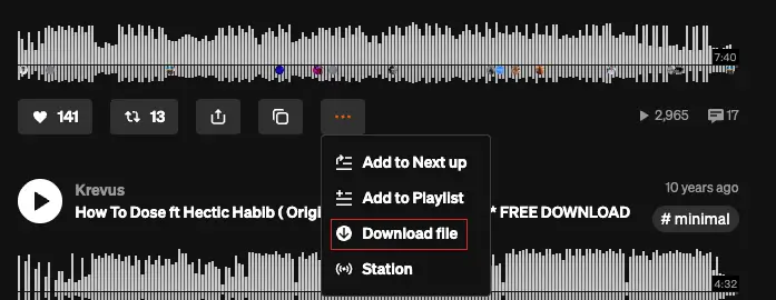 Scenario: The artist has enabled downloads directly through SoundCloud's interface. This is the most seamless experience for the user.