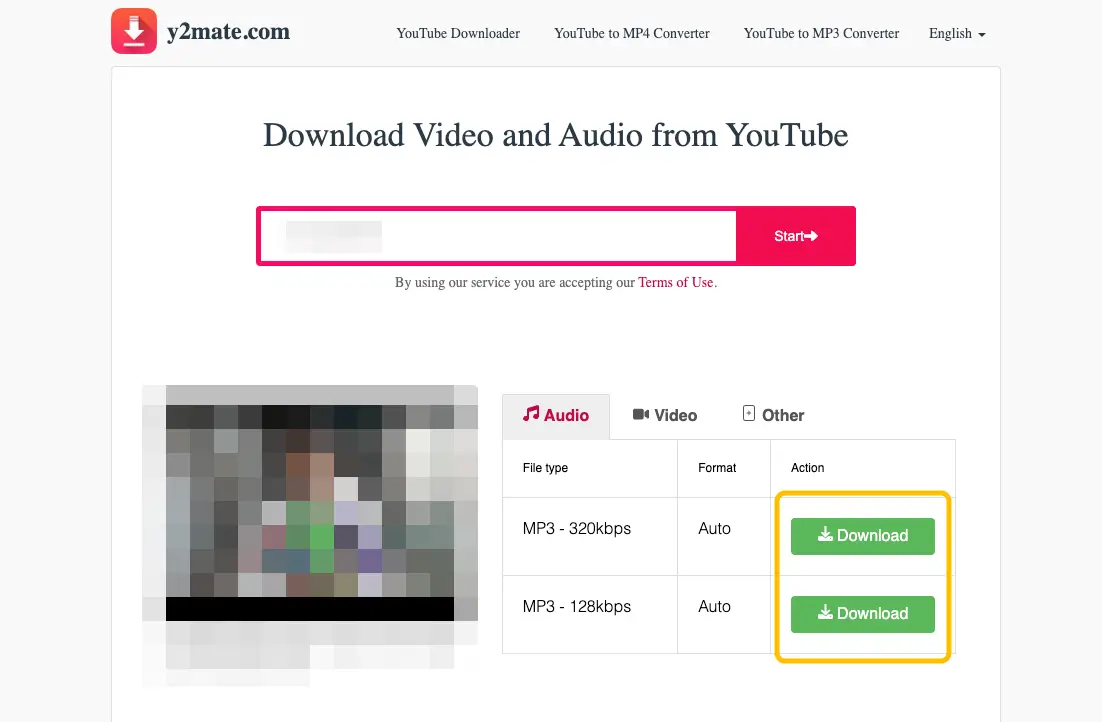 Paste & Convert: Open the Y2Mate website, paste the link into the search box, and click "Start."
