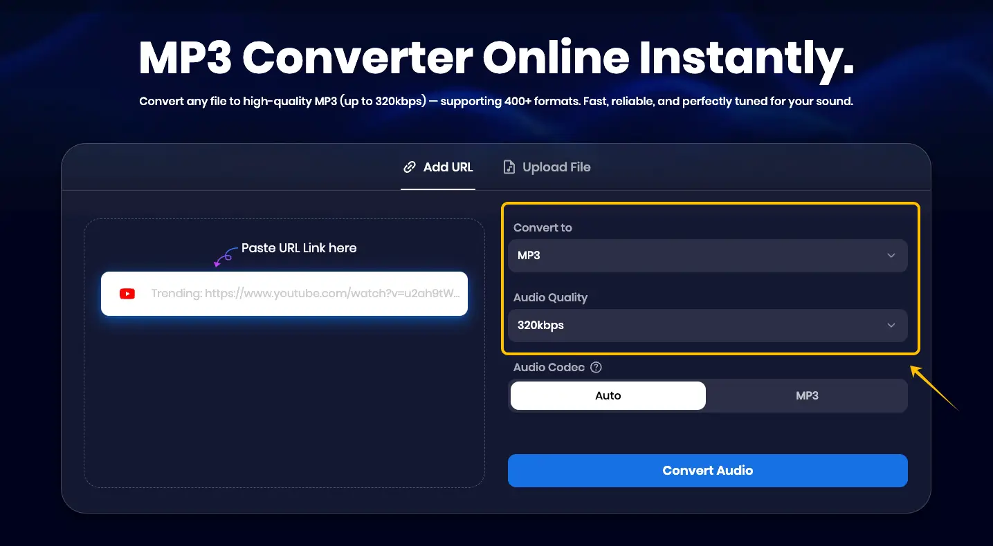 Choose Audio Quality: For the best experience, we recommend choosing 320kbps.