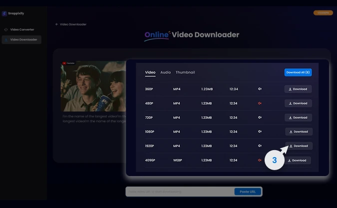Choose the desired video format (e.g., MP4) and resolution (e.g., 1080p) and click the download button.