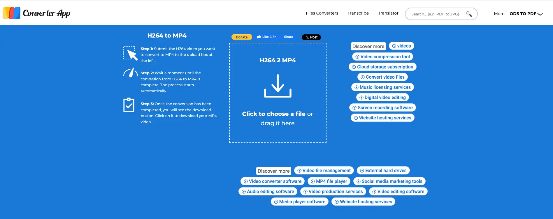 Upload your H.264 file to the website.