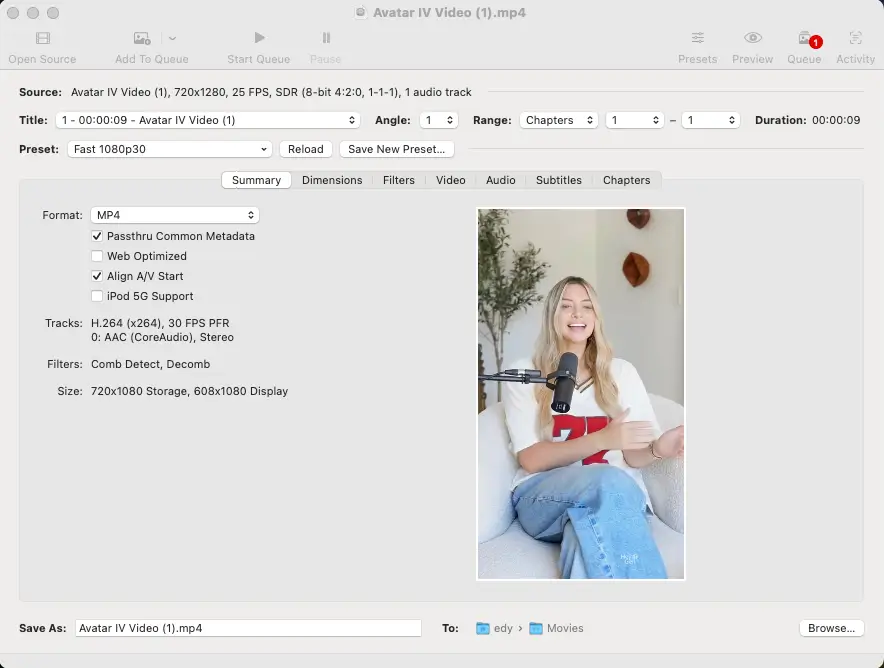 Customize any settings (resolution, bitrate) and click Start Encode.