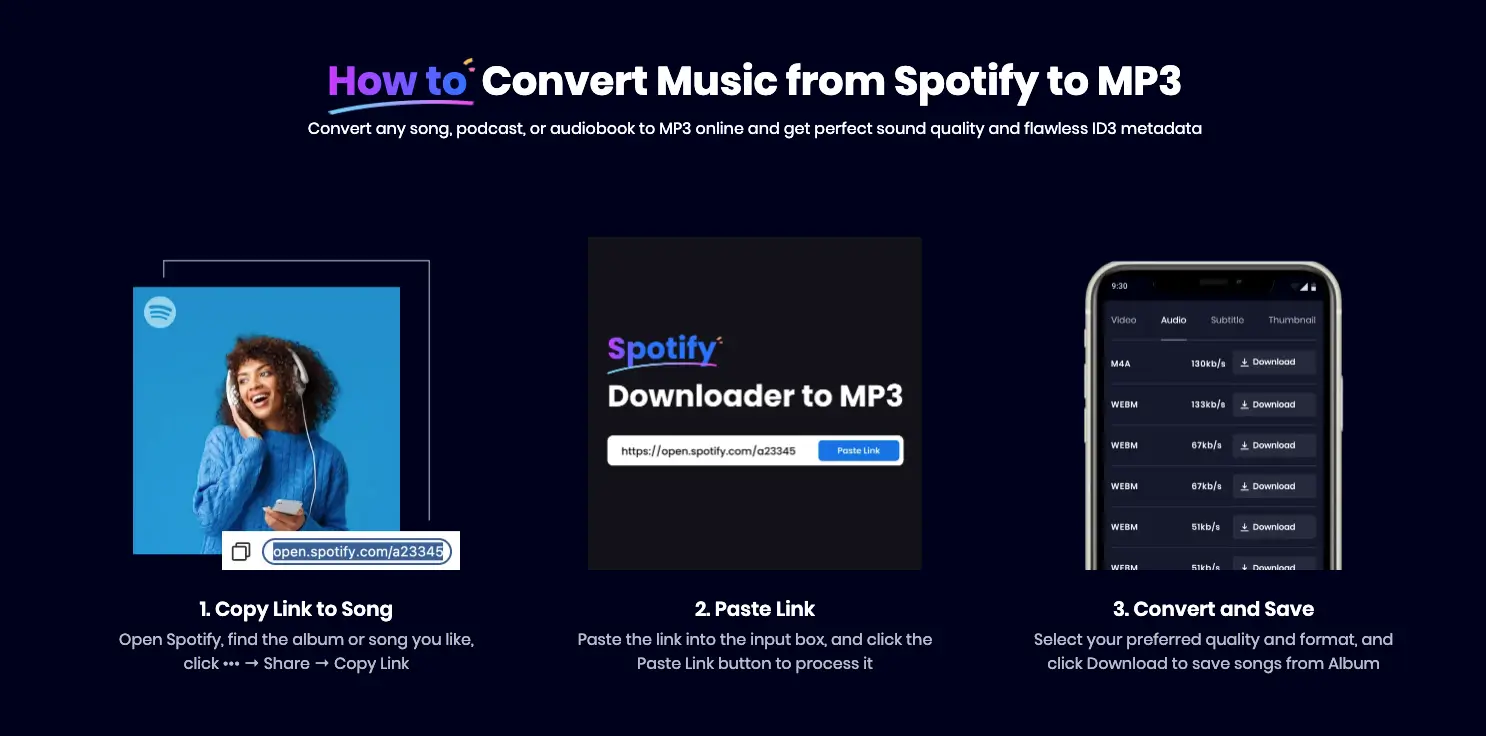 Audio Format (Stream Conversion): Song streams, primarily available on audio platforms like Spotify. The stream needs to be converted.