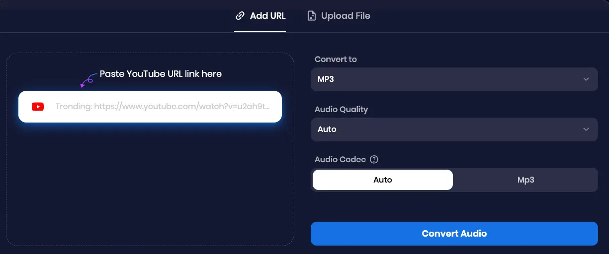 Find the YouTube video or song you want to convert, copy the video’s URL from the address bar, and paste it into Snappixify's conversion tool. -