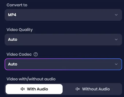 Select MP4 as your output format. You can customize the quality and adjust video codec and other settings for the best results.