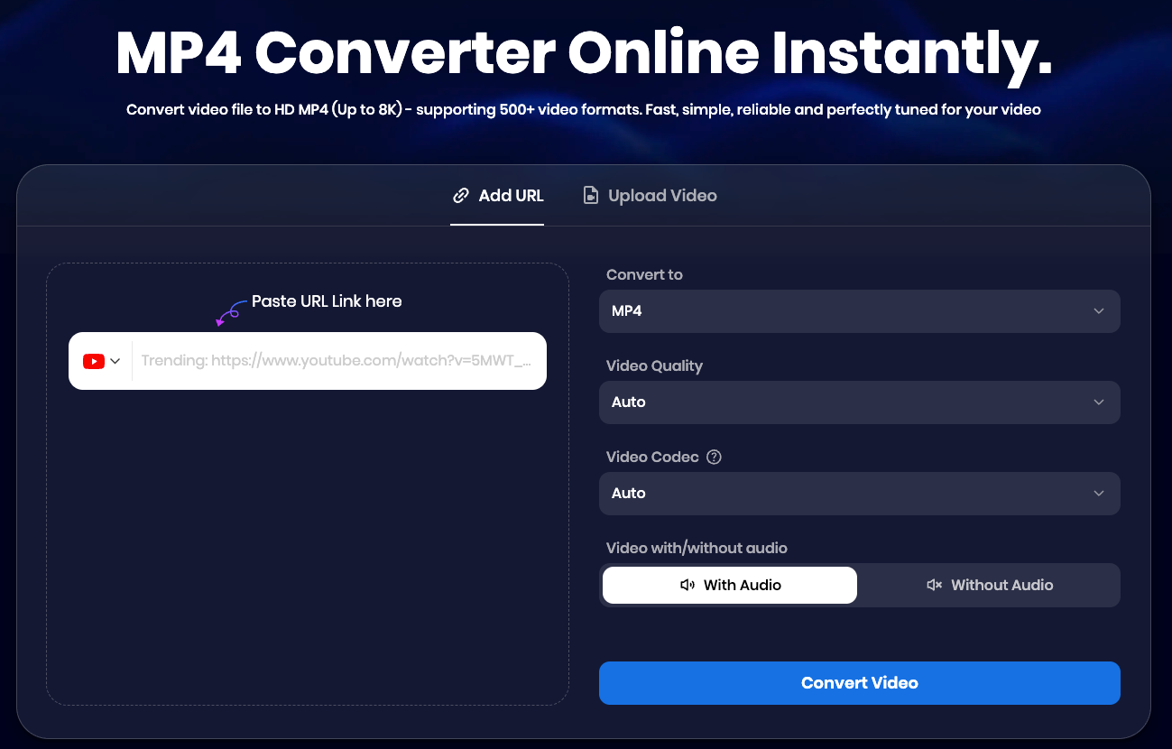 Support social media link: Apart from uploading local files to convert, you can also directly paste the YouTube, X, TikTok, and Instagram link directly to get the MP3 and MP4 files.