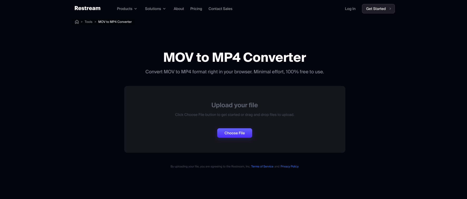 Restream offers an online tool that can convert MOV files to MP4. Users can upload files directly in their browser without installing any software.