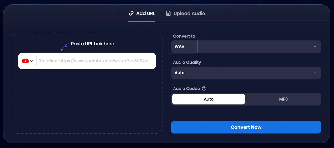Paste & Select: Go to Snappixify, paste the link, and choose "WAV" from the dropdown.
