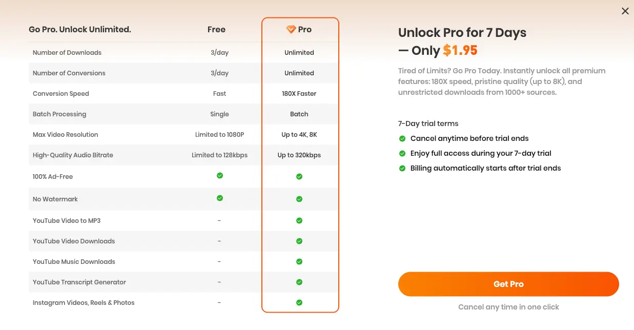 The 7-Day Pro Trial (Go Pro): If you are in the middle of a high-intensity project, you can pay just $1.95—which is less than half the price of a basic coffee at Starbucks—to unlock 7 days of Pro access: